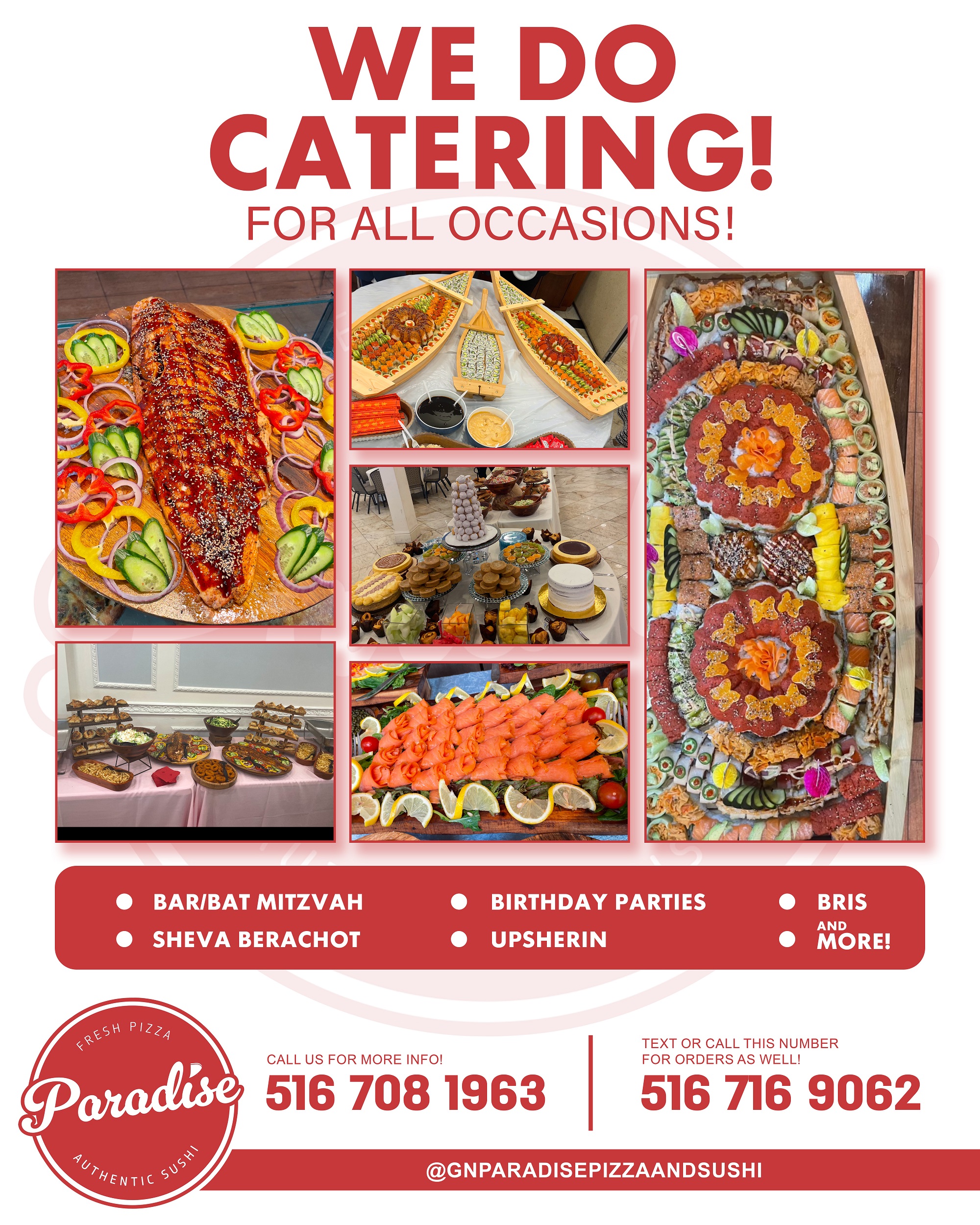 Paradise Pizza & Sushi is the go-to destination for scrumptious pizza, sushi, pasta, and more! Our kosher restaurant is nestled in the heart of Great Neck, NY, and is committed to serving the local community with mouth-watering food and excellent service. At our pizza restaurant, we take pride in offering a wide variety of pizzas, including our famous spelt pizza, made with the finest ingredients and baked to perfection in our ovens. If you're looking for something other than pizza, our sushi restaurant is just what you need. We offer a variety of sushi options made with fresh seafood and prepared by our expert chefs. You can also savor our delicious pasta dishes cooked to perfection.